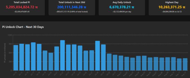 قد يكون العامل الرئيسي الآخر وراء هبوط سعر عملة Pi هو عملية فتح رموز ضخمة في يوليو. ووفقًا للتقارير، سيتم إطلاق أكثر من 200 مليون عملة Pi هذا الشهر. ومن المتوقع أن تصل كمية الإطلاق اليومية إلى 10.1 مليون عملة. عادةً ما يؤدي هذا التدفق إلى زيادة ضغط البيع، حيث يقوم حاملو الكميات الكبيرة بتصفية الأصول، مما يتجاوز الطلب من المشترين، مما يؤدي إلى خفض الأسعار.