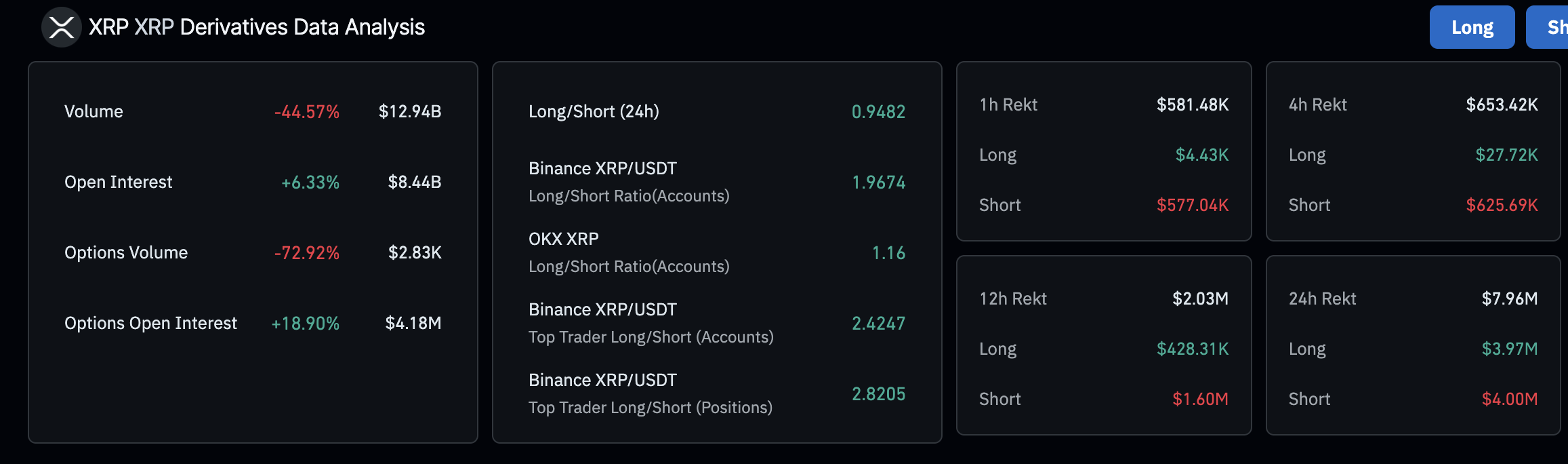 ومع ذلك، انخفض حجم تداول سوق المشتقات بنسبة 45% في آخر 24 ساعة، ليصل إلى 13 مليار دولار، مما يعكس عوامل عدم الاستقرار بعد أن ارتفع السعر إلى 3.00 دولارات يوم الاثنين ثم تراجع بسرعة إلى مستوى الدعم عند 2.80 دولار. يشير انخفاض حجم التداول إلى تراجع النشاط في السوق، مما قد يعيق الزيادة المستقرة في سعر XRP.