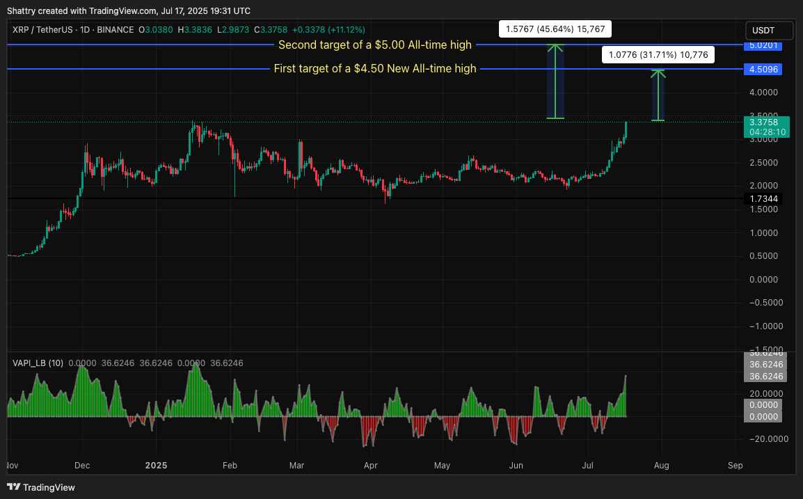 تحليل ChatGPT لـ XRP يظهر أن أداء XRP في عام 2025 قد تعافى بقوة من أدنى مستوى له في مايو عند 1.80 دولار، والآن المستوى قريب من أعلى مستوى تاريخي له في عام 2018 والذي يبلغ 3.84 دولار.