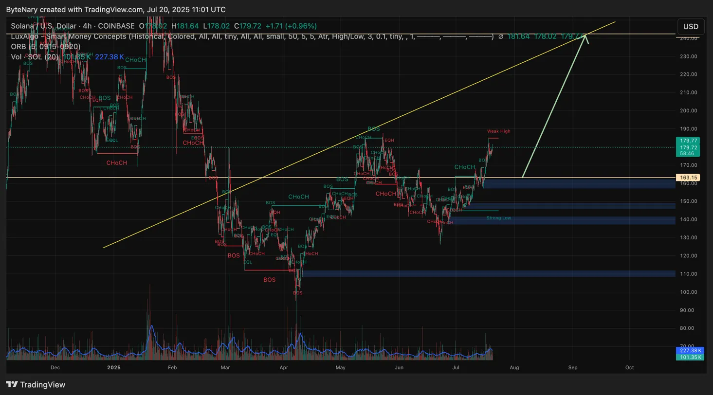 تشير التحليلات الفنية إلى أن SOL في معركة حاسمة بين منطقة الخصم ومنطقة القسط، وهو حاليًا يختبر التوازن حول 179 دولار.
