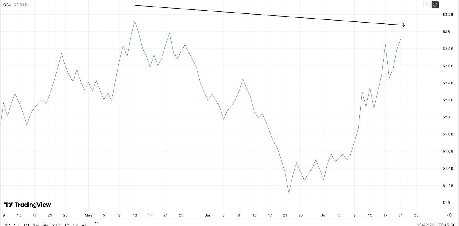 OBV تباعد - نقص في الزخم الصعودي؟