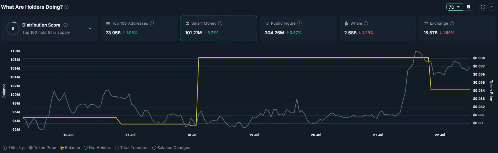 مع زيادة استثمارات “المال الذكي” في PENGU، زادت قوتها أيضًا. وفقًا لبيانات Nansen، تمتلك هذه المحافظ حاليًا PENGU بقيمة 101.21 مليون دولار، بزيادة قدرها 6.7% خلال الأيام السبعة الماضية. عادة ما يُعتبر اهتمام “المال الذكي” إشارة صاعدة، حيث يميل المستثمرون الأفراد إلى اتباع خطواتهم.