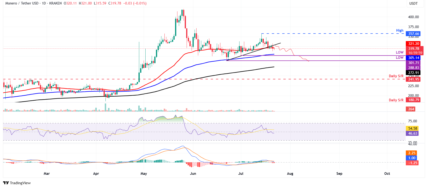 تحليل سعر XMR: يظهر مؤشر الزخم علامات هبوطية