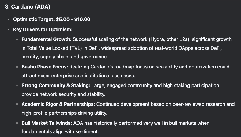 حتى بدون سوق صاعدة شاملة (وهو الشرط اللازم للوصول إلى 10 دولارات)، فإن تحقيق هدف DeepSeek المتحفظ البالغ 5 دولارات قبل العام الجديد سيتجاوز بسهولة الرقم القياسي السابق البالغ 3.09 دولارات الذي سجلته ADA.