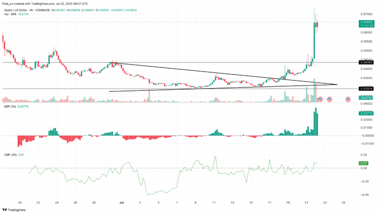 هذا الإعداد أدى إلى تقلب ضيق في الأسعار، وفي النهاية، اخترق SPK الحد العلوي مثلث. ونتيجة لذلك، اخترق SPK مستوى المقاومة عند 0.044 دولار، مع الحفاظ على مستوى الدعم عند 0.029 دولار.