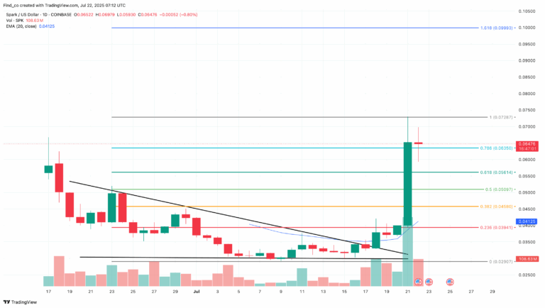 ارتفع الرمز الأصلي SPK لمنصة التمويل اللامركزي (DeFi) Spark بنسبة 100% في الأيام السبعة الماضية. بعد هذه الخطوة، السعر الحالي للعملة المشفرة Spark لا يزال يبعد 17% عن العودة إلى أعلى نقطة تاريخية.
