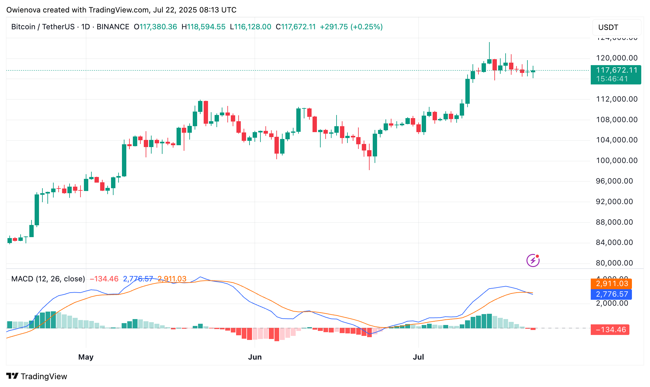 سعر بيتكوين (BTC) يتراجع قصير المدى، اليوم (23) سجل في فترة الظهيرة الآسيوية حوالي 118,500 دولار. لقد انتعش بيتكوين مؤخرًا بشكل قوي إلى مستوى قياسي جديد، مما أظهر العديد من المؤشرات الرئيسية داخل السلسلة اتجاهًا إيجابيًا. لكن معدل الربح المحقق من التحويلات للمحتفظين ببيتكوين على المدى الطويل (SOPR) قد ارتفع بشكل كبير، مما يظهر علامات على الإغراق لجني الأرباح.