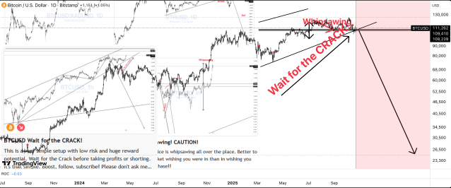 يبرز محلل العملات الرقمية RealMacro أن هناك إمكانية أن يتعرض سعر البيتكوين لصدع قريبًا. يأتي ذلك في وقت يستمر فيه سعر البيتكوين في التوحيد حول مستوى 110,000 دولار، ولم يقم بأي حركة ذات مغزى مع الزخم من هنا.
