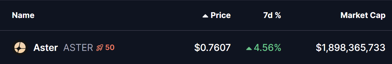 مع بداية عام 2026، يظهر سوق العملات الرقمية الأوسع استقرارًا متجددًا. ارتفعت إيثريوم (ETH) تقريبًا بـ 4% على مدى الأسبوع، ويتوسع الزخم تدريجيًا عبر العملات البديلة الرئيسية — بما في ذلك رمز التبادل اللامركزي Aster (ASTER).