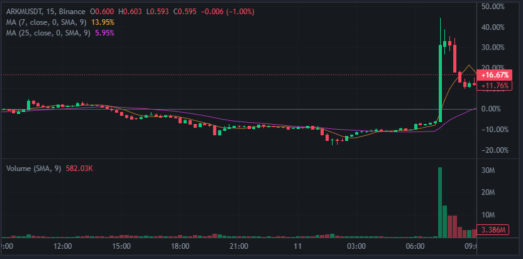 - Arkham ارتفع بنسبة 23.79% منذ منتصف الليل.