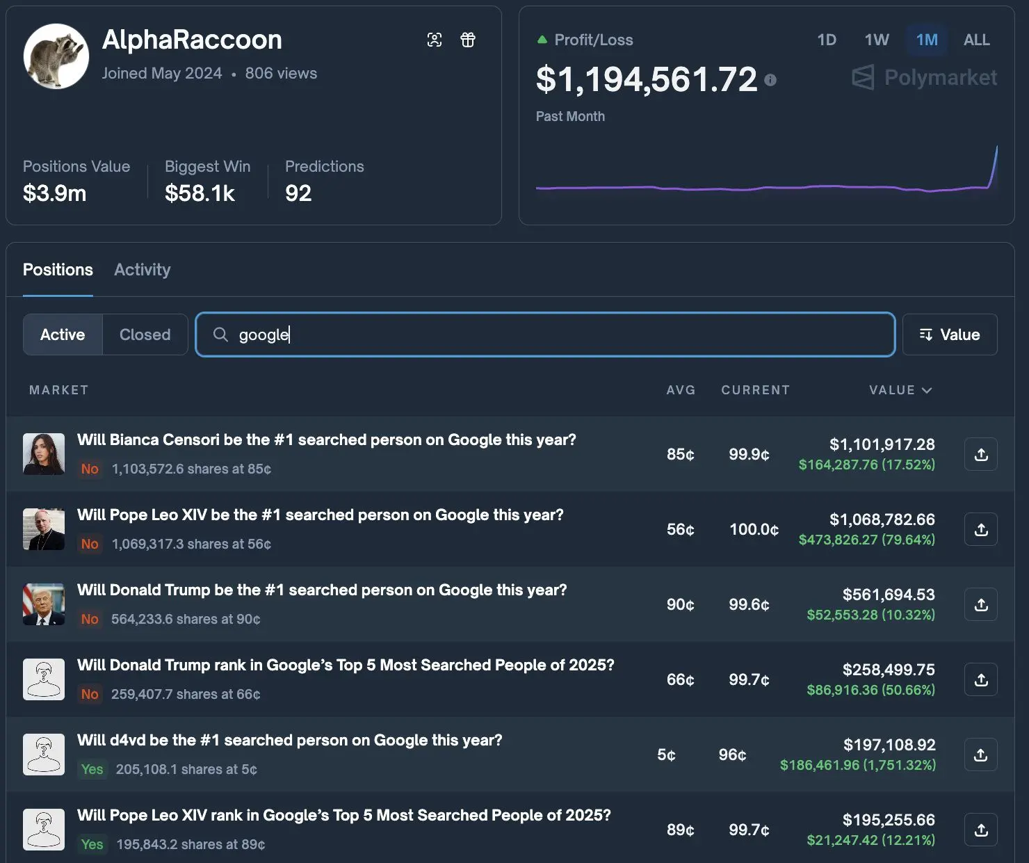 مع ذلك، تظهر بعض حسابات أسواق التنبؤ علامات مقلقة على التداول بناءً على معلومات داخلية، لا سيما حساب جديد حقق أكثر من $1 مليون في يوم واحد عبر الرهان على اتجاهات بحث Google.