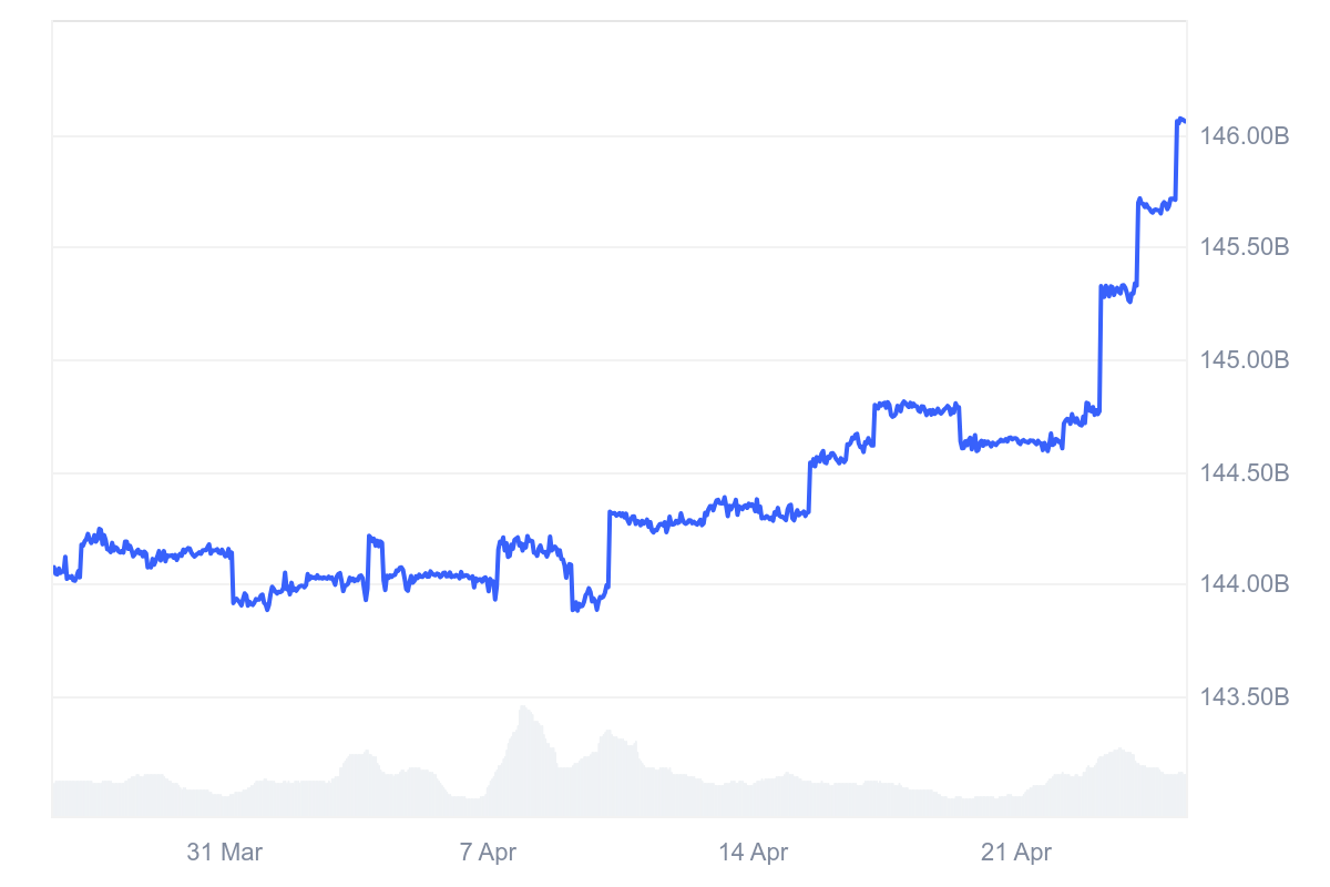 ! Chart 1- Tether (USDT) Market Cap, veröffentlicht auf CoinMarketCap, 25. April 2025.