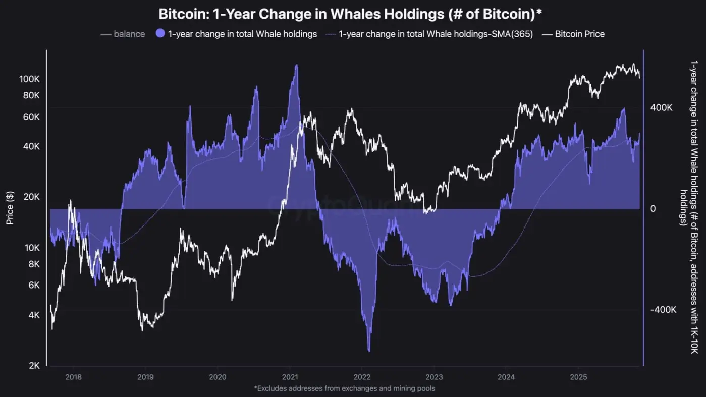 Fuente: CryptoQuantDurante el período del 24/10 al 7/11, las ballenas que poseen más de 10.000 BTC han aumentado significativamente su cantidad de holdings, casi se ha duplicado, acumulando más de 36.000 BTC en solo unas semanas.