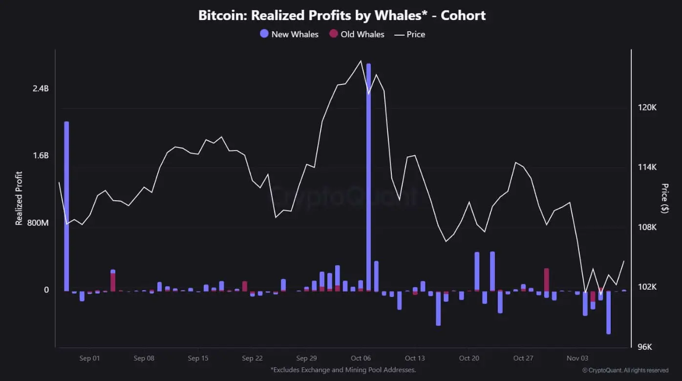 Fuente: CryptoQuantEn solo unos días, este grupo ha registrado una pérdida de más de 1 mil millones de USD, de los cuales solo el 7 de noviembre, esta cifra alcanzó los 515 millones de USD. Esta caída fuerte está desafiando la confianza de las ballenas, al mismo tiempo que crea una tensión clara entre el dinero viejo y el dinero nuevo en el mercado.