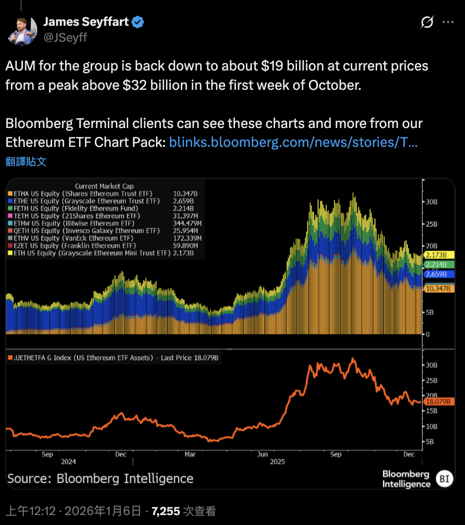 Hasta la semana del 2 de enero de 2026, los ETF de Ethereum registraron más de 160 millones en entradas netas, llevando el tamaño total de gestión de activos (AUM) a aproximadamente 19,05 mil millones. Aunque todavía está lejos del pico de 32 mil millones alcanzado a principios de octubre, la confianza de los inversores en sus posiciones claramente está en recuperación.