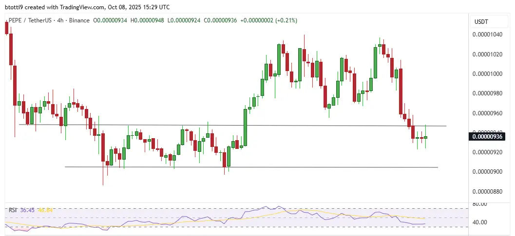 Harga PEPE turun 6% ke level dukungan kunci di tengah kelemahan memecoin
