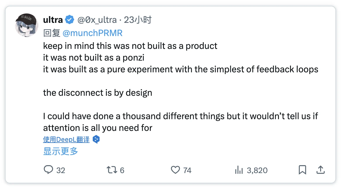 この「ゲーム化」メカニズムは非常に重要です:ユーザーはできるだけ「騒がしく」発言するように促され、最も多くの注意を引くために競い合い、Mindshare報酬プールへの参加券を獲得します。
