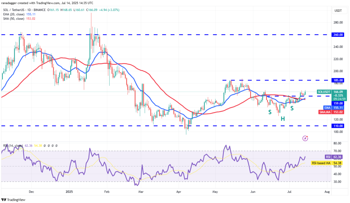 ソラナ(SOL)は先週159ドル以上で取引を終え、強気の逆肩頭肩型を完成させました。ブルは土曜日に突破エリアを成功裏に守りました。