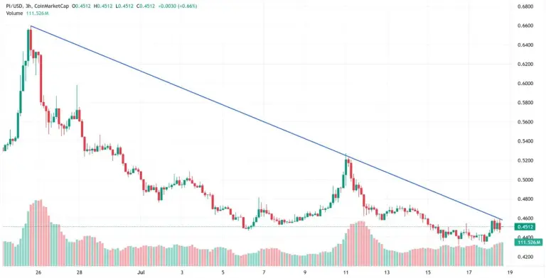 複数の重要な取引セクターにおいて、Pi通貨の2025年価格予測トレンドは0.53ドルのレベルで直接的な抵抗を形成しており、意味のある反発は突破を急務としています。