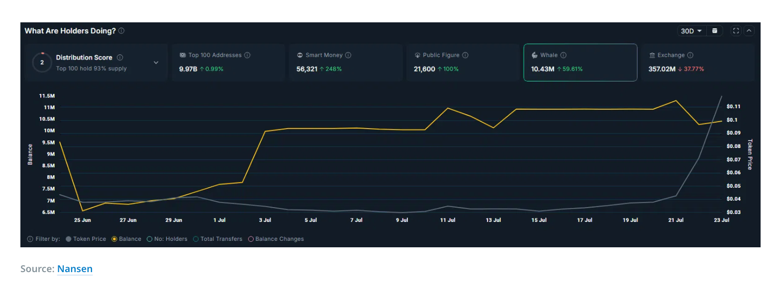 上昇の核心的ドライバー:クジラの買い集めと供給の緊縮 多くの要因が共同でSparkの今回の大きな上昇を促進しています: