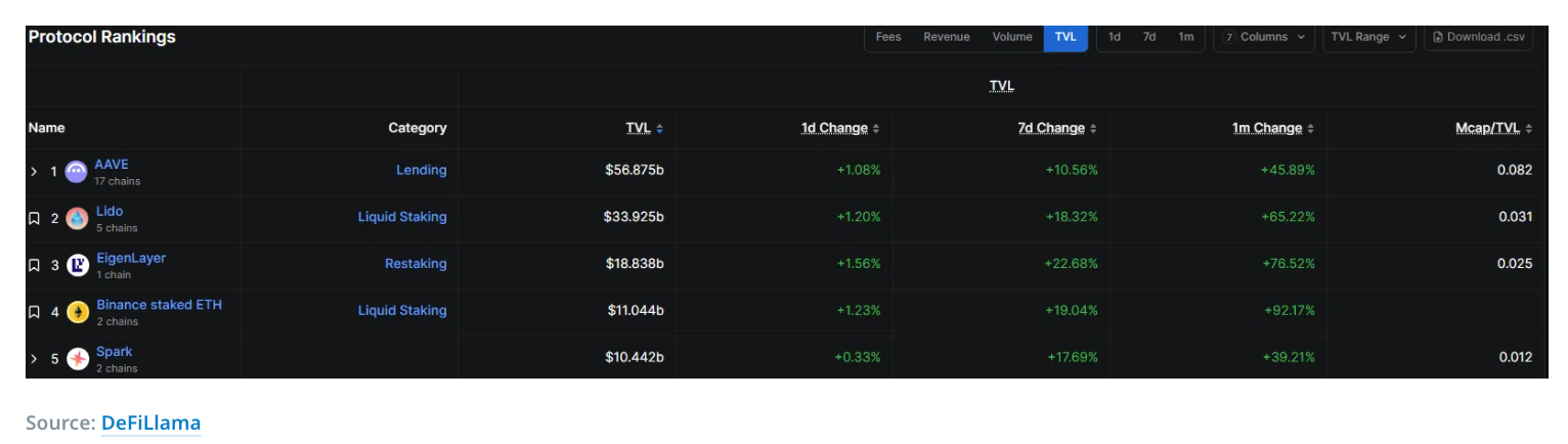 TVLが100億を突破しDeFiのトップ5に: crypto.newsの以前の報道の通り、SparkプロトコルのDeFiエコシステムは最近急成長しています。水曜日にその総ロック価(TVL)は104.8億ドルの歴史的高値に急上昇し、先月比で40%以上の成長を遂げ、DeFi分野で5番目のプロトコルとなりました。TVLの急上昇は通常、プラットフォームの有用性の向上を意味し、その結果、ネイティブトークンSPKの需要が増加し、価格が押し上げられます。