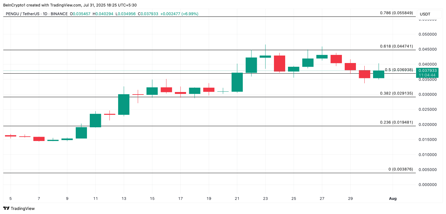PENGUにとって、約0.045ドルの流動性クラスターは価格のマグネットになる可能性があり、トレーダーが市場をその領域に押し上げることで価格が上昇する可能性があります。