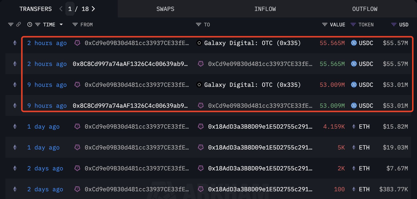その中で最も注目を集めている取引は、Arkham Intelligenceが追跡したあるウォレットからのものです。3日間で、そのウォレットはGalaxy Digitalのオフショア取引プラットフォームを通じて約3億ドル相当のETHを購入しました。そのウォレットは現在、約2600万ドルの未実現損失を抱えています。しかし、購入の規模と速度の速さは、これは投機的な短期取引ではなく、戦略的な長期蓄積であることを示しています。