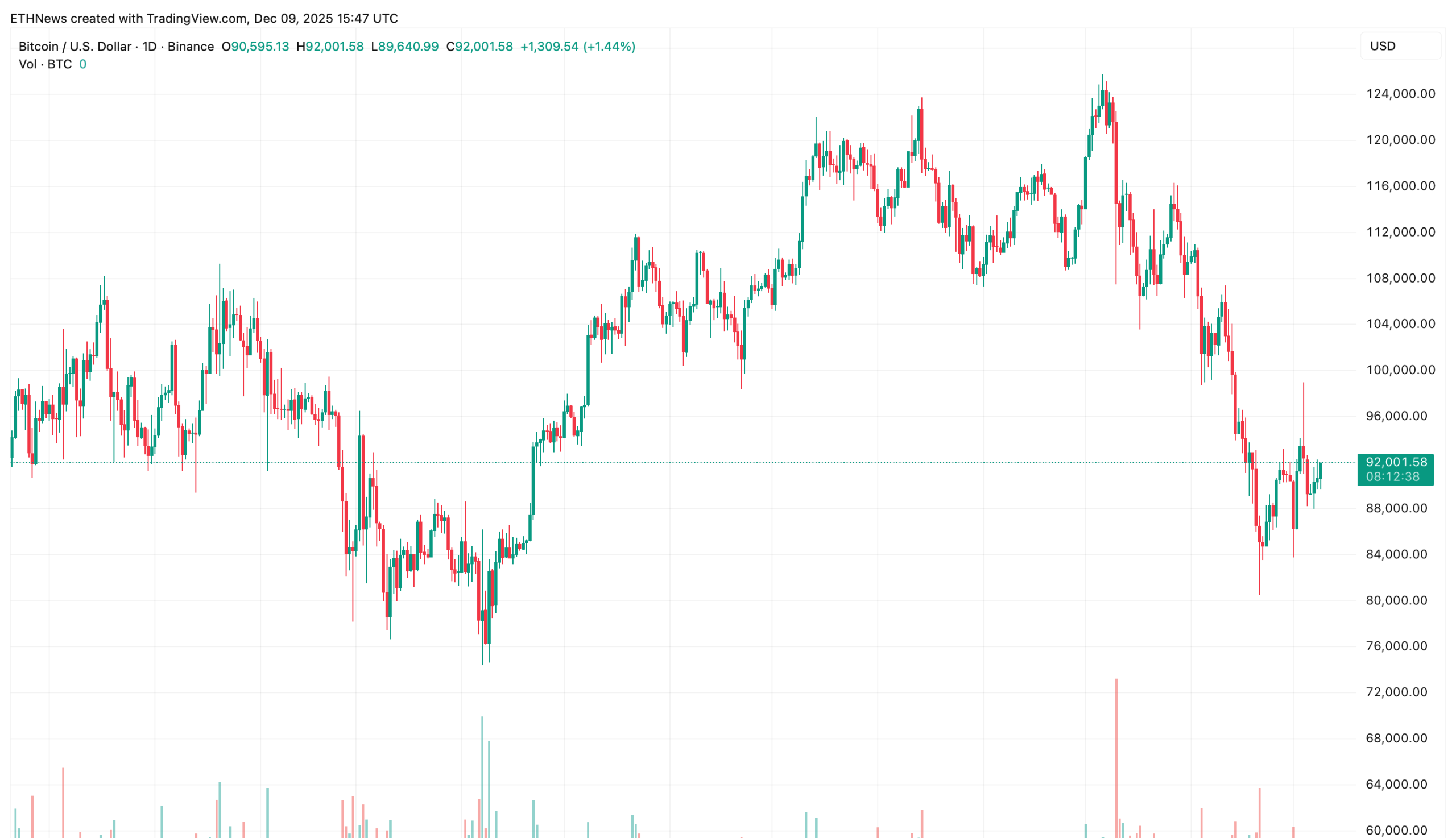 ビットコインの直近の価格推移は、ケンドリック氏の慎重なトーンを裏付けています。10月の過去最高値更新後、BTCは長期にわたる調整局面に入りました。市場は$90,000超で持続的な勢いを築くのに苦労しており、短期トレーダー・長期投資家の双方に迷いが見られます。