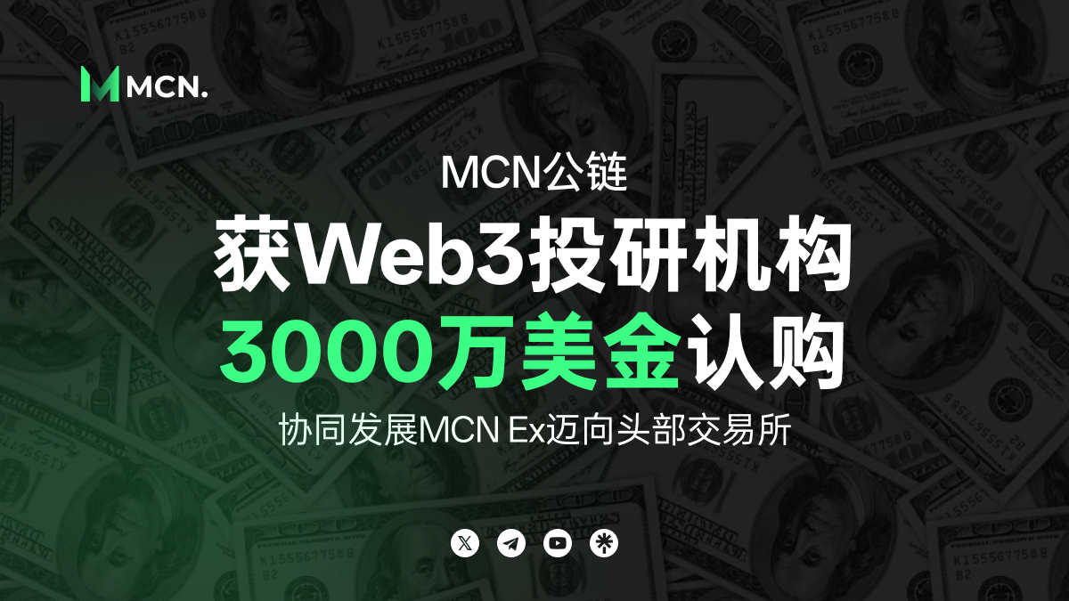 近日,MCNGlobal グループはそのパブリックチェーンMCNが2026年第1四半期にローンチされることを発表しました。このニュースはすぐにWeb3投資研究機関の注目を集め、現在3000万米ドルの資金がMCNパブリックチェーンのノード購入に充てられ、残りのシェアはわずか2500万にまで減少しています。報告によると、Web3投資研究機関の割当は3年後にリニアリリースされる仕組みを採用しており、この配置は投資機関がWeb3業界の長期的な成長潜力を高く評価していることを示すだけでなく、MCNGlobalグループのMCN公链の技術力と将来性に対する堅い信頼をも表しています。1年以上にわたる深耕と努力の結果、MCNGlobalグループは事業の蓄積とエコシステムの構築において顕著な成果を上げ、業界内で新たな注目を集める勢力へと成長しています。今回のMCN公链のローンチと機関投資家の参入は、グループのさらなる発展に強力な推進力をもたらします。未来を見据え、MCNGlobalグループはMCNを契機に、「コンセンサスと共建、協調的な発展」の理念を引き続き堅持し、エコシステムの配置を絶えず改善し、コア競争力を向上させていきます。MCNEXはトップ取引所を目指し、着実に前進しています!