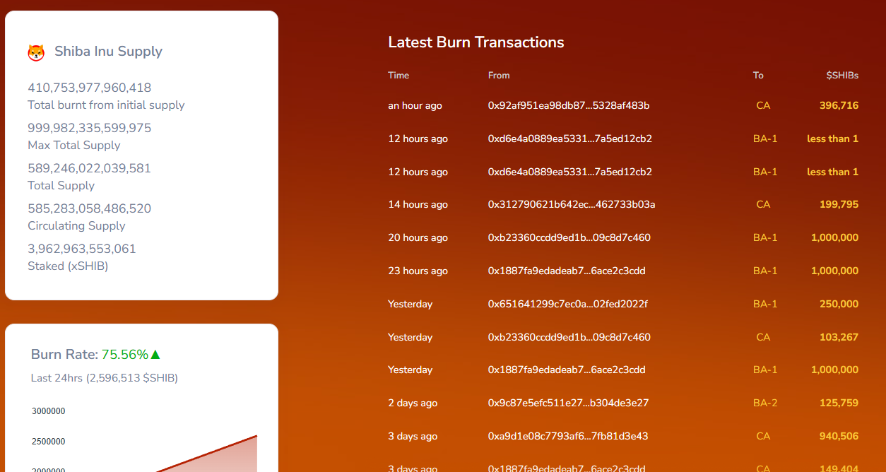 最新のバーントランザクションには、100万SHIBを含む複数の大規模なバーンや、396,716 SHIBを含む取引もあります。