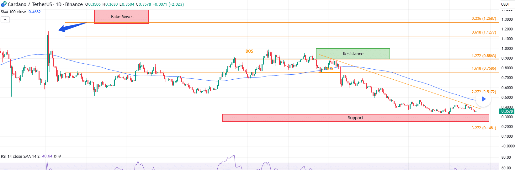 Cardanoは主要サポートゾーンに位置