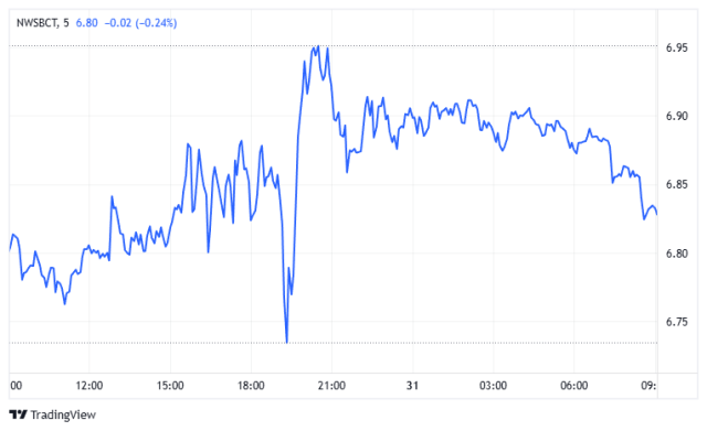 NWSBCT(ブルーチップ指数): NWSBCT指数は、深夜のラリーで設定された6.95の抵抗レベルで明確に反発しています。そのピーク以降、指数は一連の低い高値を記録しています。6.85付近で一時的にサポートレベルが見つかりましたが、現在の軌道は6.80の心理的な底値の再テストに向かっていることを示唆しています。短期的には、明確な高値低値が確立されるまで、技術的な構造は脆弱なままです。