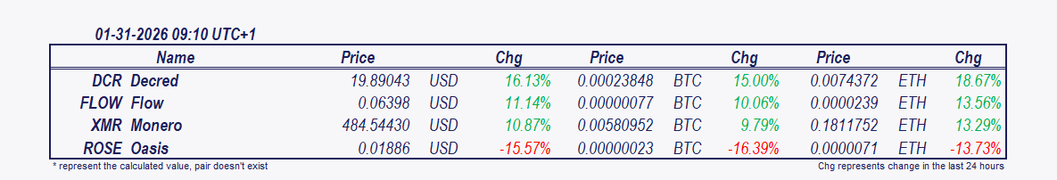 #### 過去24時間で最も動いたトークンとコイン:**09:00 CET – モーニングパルス:夜間のピーク後に市場が下落傾向 – 本日のトップモーバー*** **DecredとFlow:** 深夜からDecredは14.52%上昇し、Flowは7.14%高い。**概要:** 現在の市場は、非常に変動の激しかった夜間セッション後の冷却期間に特徴付けられています。昨日遅くに急騰した後、価格は局所的なピークに達し、その後は安定した下降チャネルに入りました。今朝の動きは即時の買い圧力の欠如を反映しており、最近の上昇を統合しながら、勢いの減少期を経てゆっくりと下落しています。🔍 **市場インサイト:** 早朝のドリフトにもかかわらず、最大の資産間で顕著な乖離が現れつつあります。ビットコインはプラス圏を維持し、相対的な強さを示し、安定化の役割を果たしています。一方、イーサと広範なアルトコインセクター、特に「その他」トークンは、売り圧力が再燃し、一部の指数は2%以上下落しています。この「リスクオフ」ローテーションは、総合指数は比較的横ばいのままですが、投資家がビットコインの最近の価格変動後の安定性を求めて高ベータ資産から撤退していることを示唆しています。**NWSBCT(ブルーチップ指数):** NWSBCT指数は、深夜のラリーで設定された6.95の抵抗レベルで明確に反発しています。そのピーク以降、指数は一連の低い高値を記録しています。6.85付近で一時的にサポートレベルが見つかりましたが、現在の軌道は6.80の心理的な底値の再テストに向かっていることを示唆しています。短期的には、明確な高値低値が確立されるまで、技術的な構造は脆弱なままです。*このアップデートは、CET午前9時までの過去24時間の市場活動をカバーしています。トップモーバーには24時間のパフォーマンスが含まれますが、主な焦点は深夜からの最も顕著な変化を示す資産にあります。**2100NEWSインデックス**は00:00から9:00 CETまでの変化を示します。**2100NEWS総合指数(NWST1100)**とビットコイン&イーサセクションは、報告時間に関係なく常に24時間の変化を反映しています。公開以降に状況が変わっている可能性があることに注意してください。ビットコインとイーサのパフォーマンス分類(重要、わずか、または類似)は、その過去のボラティリティの統計分析に基づいています。**補足ノートは、これらの特定の暗号通貨と指数をハイライトする基準を詳述しています。*** **Decred(DCR)**| || --- || *2100NEWSランキング:140、ミッドキャップ、インデックスメンバー:NWST1100、NWSM200、NWSCo100、NWSDM100* || ***2100NEWS DA Orderbook品質評価グレード:** 不良、スコア:9.5(コインの平均:15)* |DCR通貨の正式名称はdecedです。DCR通貨は独立したデジタル通貨です。Decedは、コミュニティ投資、オープンガバナンス、持続可能な資本と開発を重視した暗号通貨で、ビットコインに似ています。混合の「プルーフ・オブ・ワーク」と「プルーフ・オブ・インタレスト」マイニングシステムを採用し、小規模なグループが取引プロセスを支配したり、コミュニティの意見なしにDecedを改変したりできないようにしています。通貨単位は「リダクション」(DCR)と呼ばれます。通貨の完全性を確保し、不正取引や自分自身のコインの作成を防ぐために、Decedはブロックチェーンと呼ばれる取引記録方法を使用しています。Decedは、Windows、MacOS、Linuxをサポートするマルチプラットフォームのデジタル通貨です。ウォレットアプリケーションを使えば、数クリックでDecedの送受信やマイニングが非常に簡単に行えます。DCRは、ビットコインに似た支払い機能を持つデジタル通貨として位置付けられています。その主な革新は、コミュニティが意思決定の合意に達するプロセスを改善し、コミュニティの自治を重視している点にあります。したがって、pow+posメカニズムを導入し、マイニングの専制者を制限し、マイナーとコイン保有者の利益のバランスを取り、欠席を効果的に減らしています。このシステムは、ユーザーが投票合意メカニズムの変更に参加することも可能にします。コミュニティガバナンスに加え、Decedはクロスチェーンのアトミックスワップ取引の開発にも注力しています。いわゆるアトミックエクスチェンジは、ビットコインのスクリプト言語を使ってスマートコントラクトを構築し、クロスチェーン取引を認証するものです。このような取引を実現する前提は、ハッシュ関数の元のイメージを解決する方法を見つけることです。アトミックスワップの意義は、真の分散化を実現し、資産取引のために取引所などの第三者機関を放棄することにあります。 **Flow(FLOW)**| || --- || *2100NEWSランキング:179、ミッドキャップ非イーサリアム系コイン、インデックスメンバー:NWST1100、NWSM200、NWSCo100* || ***2100NEWS DA Orderbook品質評価グレード:** 普通、スコア:17(コインの平均:15)* |Flowは次世代のゲーム、アプリケーション、そしてそれらを支えるデジタル資産のプラットフォームです。分散型ネットワークとして、誰でもFlow