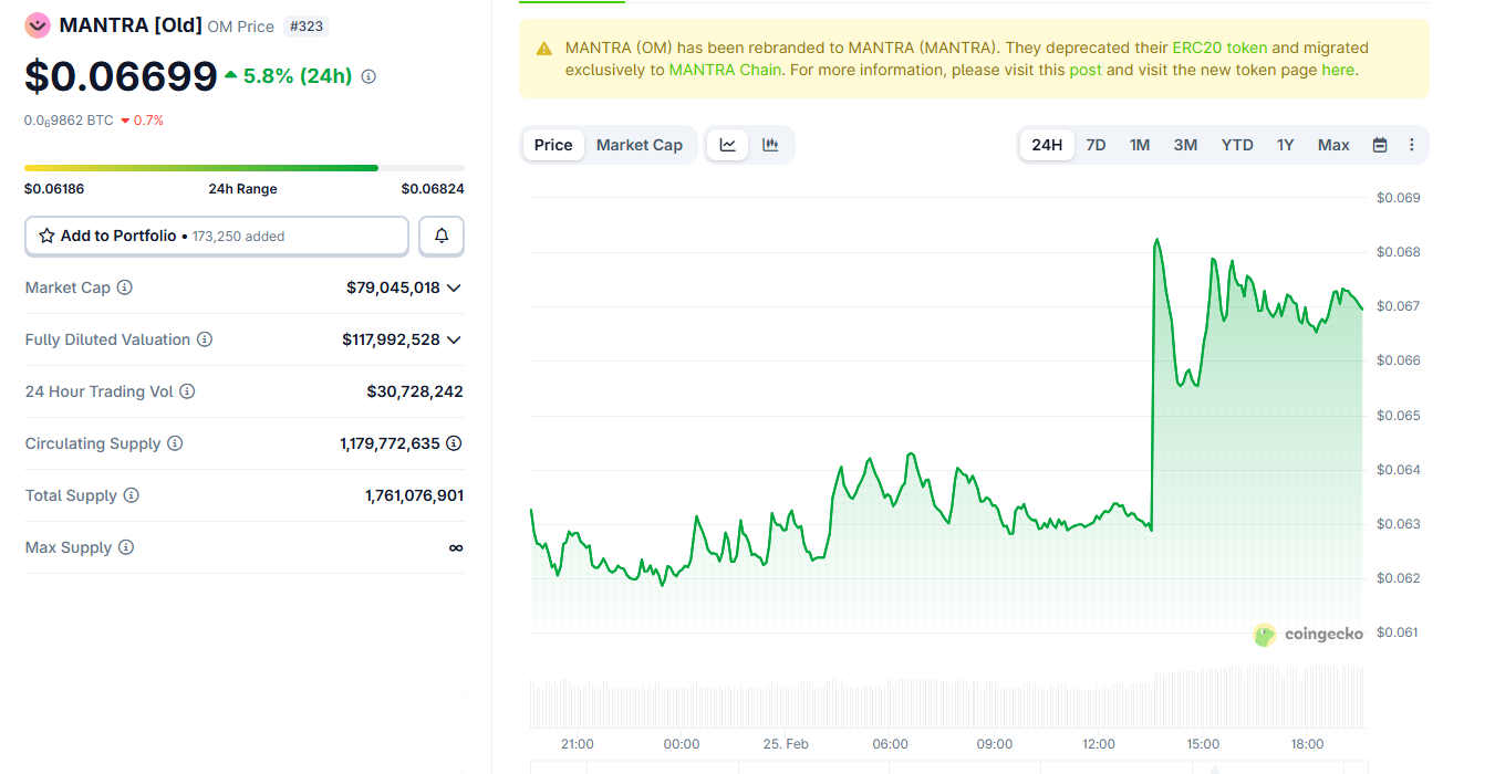 MANTRA(OM)価格チャート | 出典:Coingecko この活動の高まりは、プロジェクトがOMからMANTRAへの移行を完了しようとしていることに伴うもので、これによりトークンの構造とアイデンティティが再構築されます。