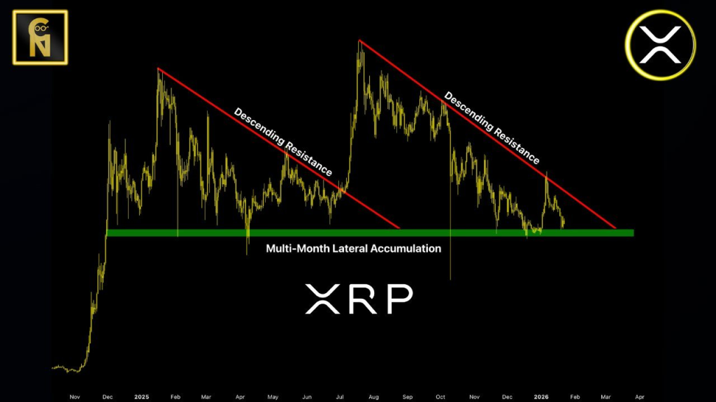 這個阻力位自 2025 年中以來塑造了 Ripple 的價格行為,Chart Nerd 認為市場一直在圍繞同一個答案轉圈。