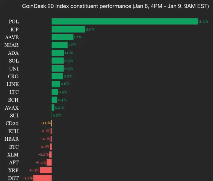 CoinDesk 20 Performance Update: Index Trades Flat as Polygon Gains 11.2%