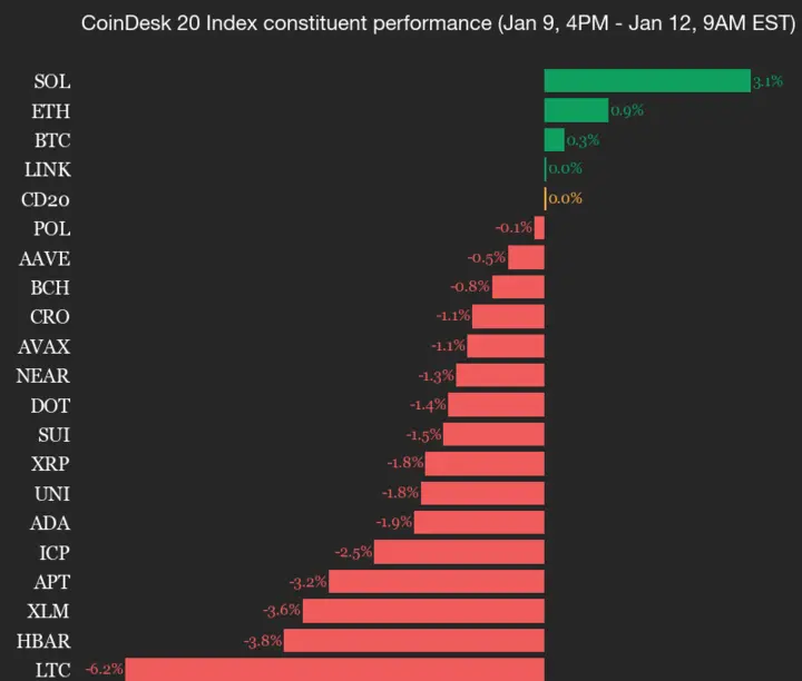 CoinDesk 20 Performance Update: Solana (SOL) Gains 3.1% as Index Trades Flat
