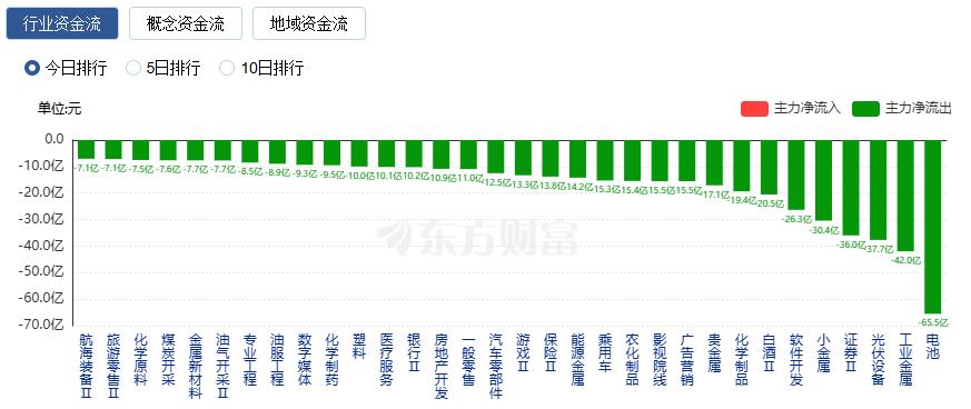 On the outflow side, sectors like batteries, industrial metals, and photovoltaic equipment experienced net outflows, with batteries seeing a net outflow of 6.553 billion yuan.