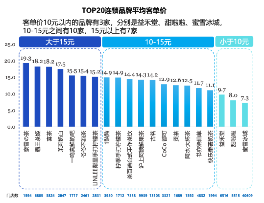 Data from Gao Yan confirms the disappearance of this “olive-shaped” structure: among the top 20 chain brands, three have an average ticket below 10 yuan, ten are between 10-15 yuan, and only seven are above 15 yuan.