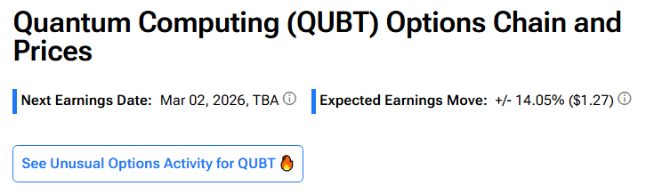 Options Traders See 14.05% Price Swing in QUBT Stock on Q4 Earnings