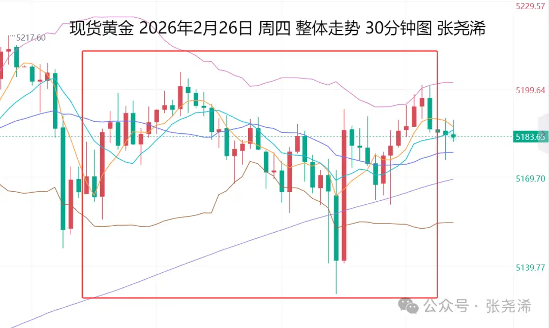 On the previous trading day, Thursday (February 26): International gold prices fluctuated and closed higher, failing to further rebound and break through highs, but also not falling back significantly. Progress in US-Iran negotiations eased risk aversion, but due to Fed’s Goolsbee stating that interest rates could be lowered, along with supporting buying interest and concerns over tariff chaos, there remains bullish demand. Overall, the trend is still upward, supported by numerous bullish moving averages below, so the direction remains inclined to the upside. Pay attention to support levels of various moving averages; there are still opportunities for long positions and bullish trades.