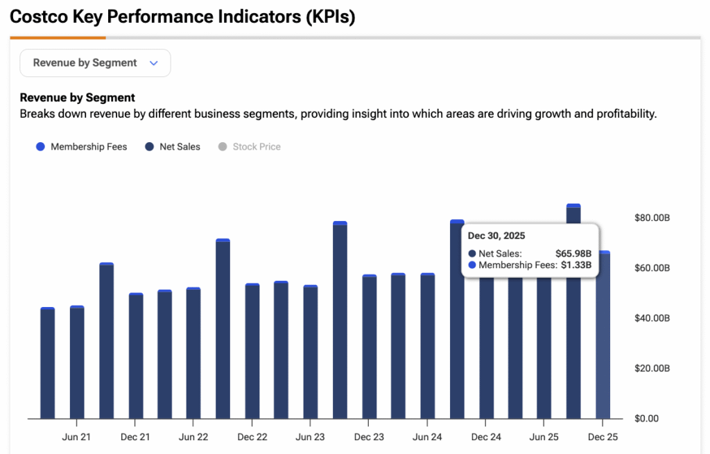 To put this into numbers, in its latest quarterly report, Costco posted $67.3 billion in net sales and $1.32 billion in membership fees. Assuming, in theory, that membership fees carry margins very close to 100% (Costco does not disclose the exact figure), and considering that operating income for the quarter came in at $2.46 billion, this implies that membership fees accounted for more than half of operating profit.