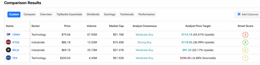 Let’s see how all of these stocks perform using the TipRanks Stock Comparison Tool.