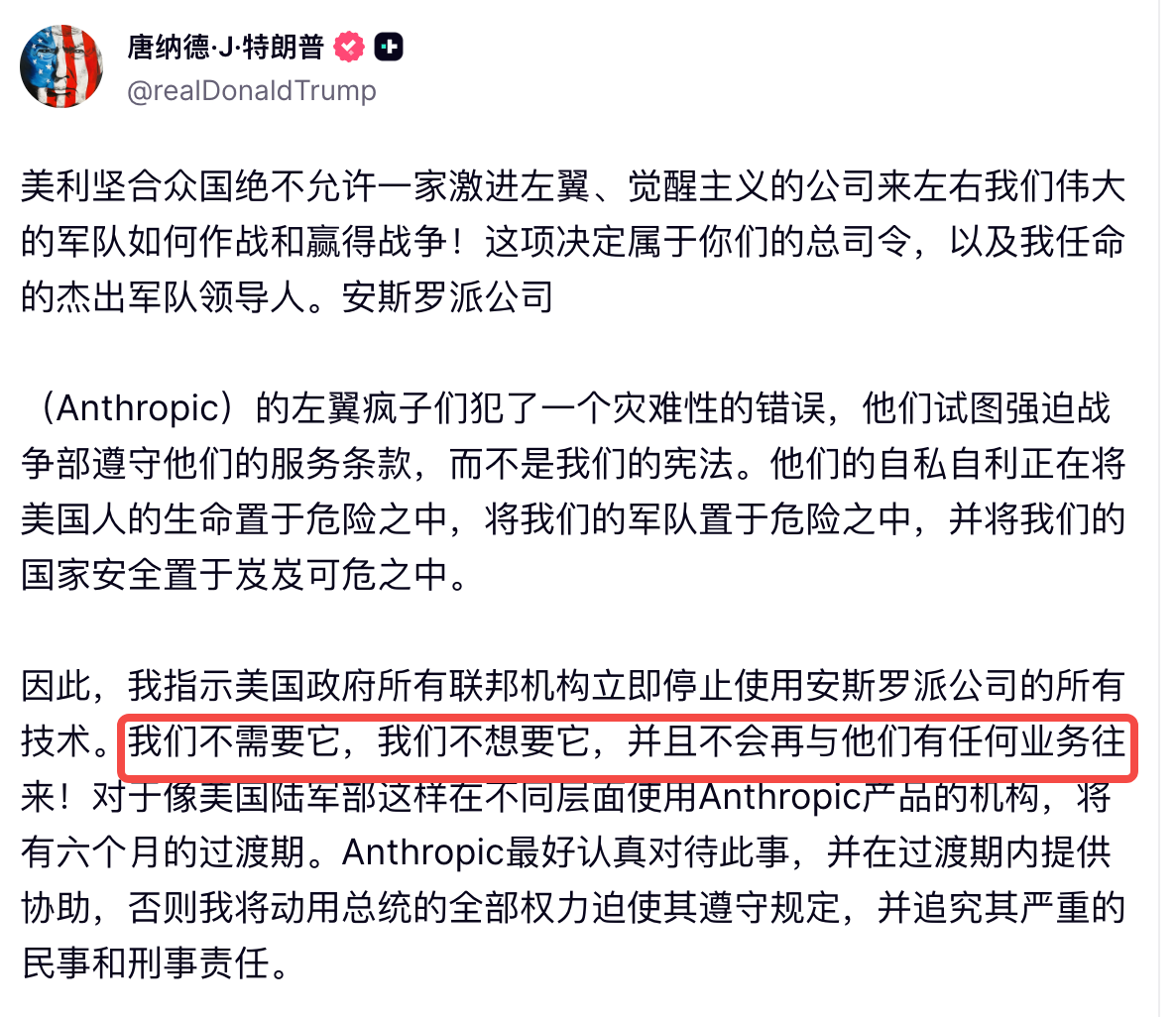 He demanded all federal agencies immediately stop using Anthropic’s technology.