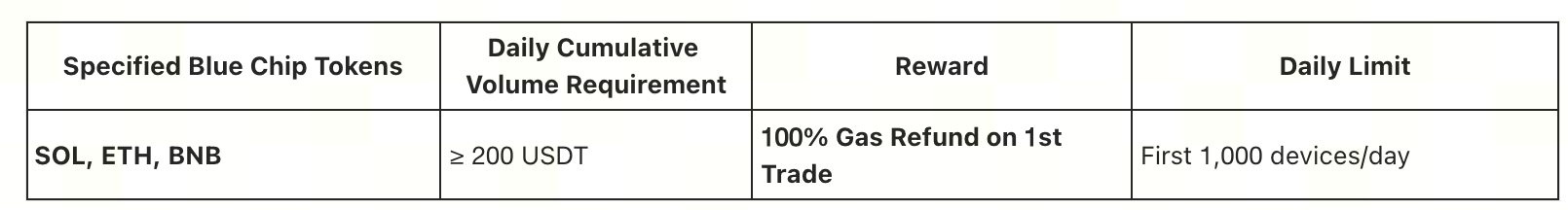 - Limite por Dispositivo: Para o mesmo ID de dispositivo, apenas o endereço de carteira com maior volume de negociação será considerado para o ranking diário. Outros endereços no mesmo dispositivo não serão incluídos nas estatísticas de recompensas diárias. O mesmo dispositivo pode participar consecutivamente todos os dias.