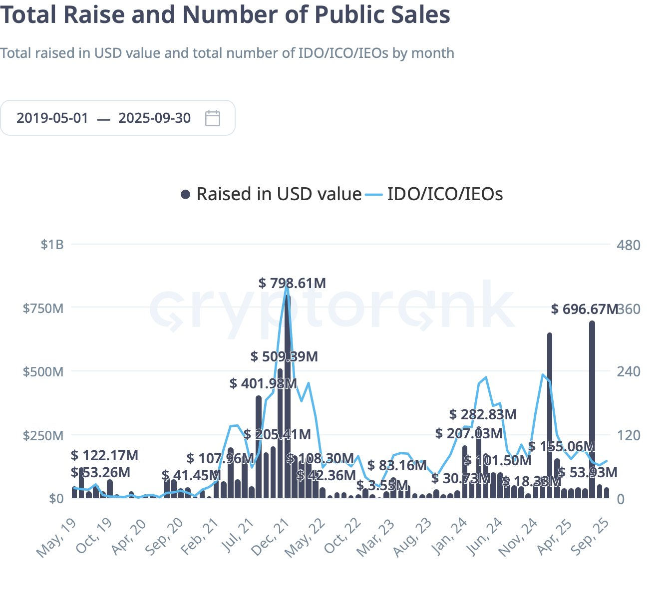 O grande destaque foi o @ Plasma, que vendeu 10% da oferta a US$0,05 em julho, usando vault ponderado por tempo e atraindo mais de US$50 milhões em compromissos. Plasma bateu ROI ATH de 33,78× e foi um dos melhores ICOs do ano. O $LAB seguiu com ROI de 6,22× no lançamento.