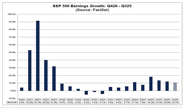 投资顾问们欣喜若狂:*“人们越来越一致地认为人工智能的影响将是真实且具有变革性的,财报季进展顺利,我们正处于美联储降息周期的开端,而且人们乐观地认为美中可能达成一项合理的贸易协议,”*巴克莱银行美国股票策略主管维努·克里希纳表示。所有那些唱衰者都颜面扫地。美国经济并未陷入衰退,通胀也并未失控,特朗普还与中国达成了贸易休战协议。所以,在一切最理想的情况下,一切都欣欣向荣。