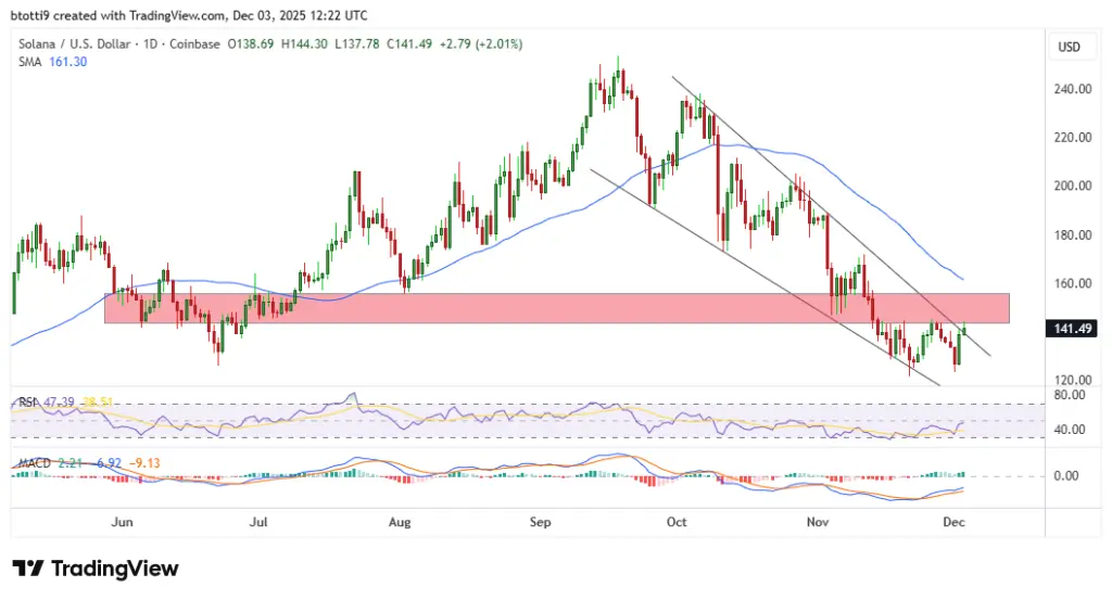 Solana recupera acima dos $140: conseguirão os bulls subir mais?