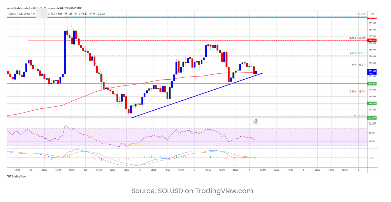 Solana (SOL) Анализ цен: После пробоя $150 столкновение с $155, каковы риски отката?