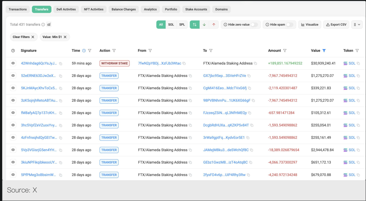 На фоне Отдачи крипторынка FTX снова сняла застейкать 31 миллион долларов SOL, давление на продажу скоро наступит?